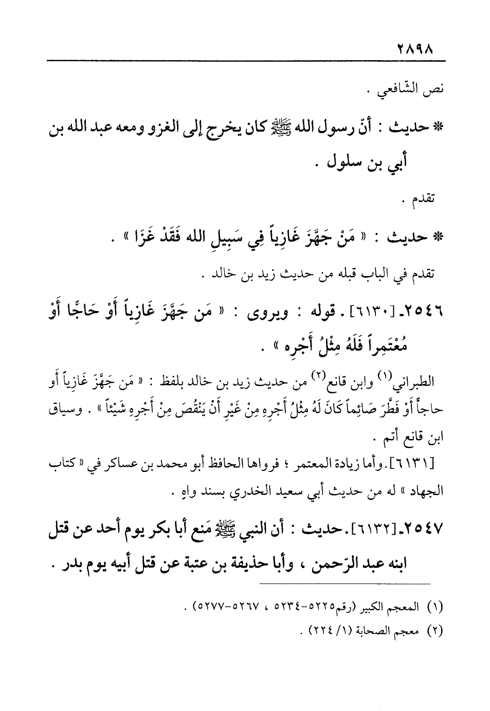 2546 - [6130]- قوله: ويروى: "مَن جَهَّزَ غَازِيًا أَوْ حَاجًّا أَوْ مُعْتَمِرًا فَلَهُ مِثْلُ أَجْرِه".