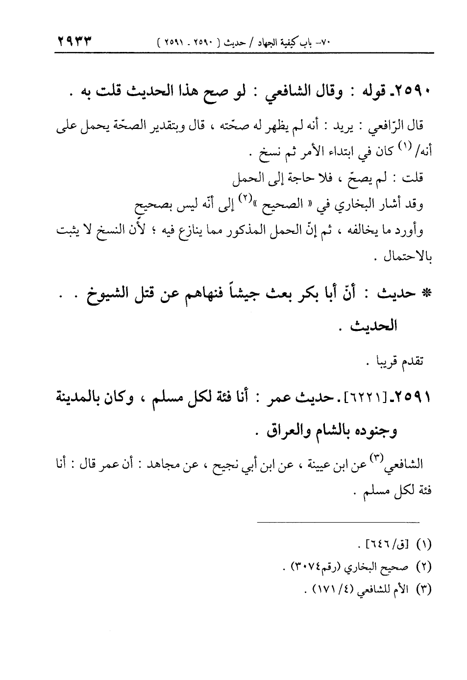 2591 - [6221]- حديث عمر: أنا فئة لكل مسلم، وكان بالمدينة وجنوده بالشام والعراق.