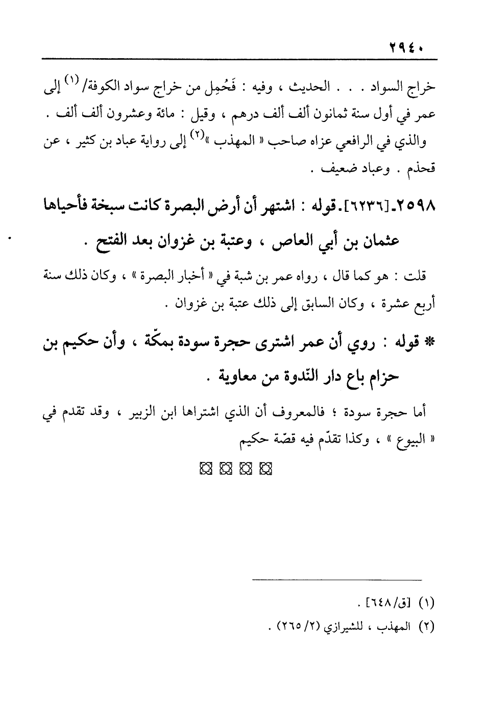 2598 - [6236]- قوله: اشتهر أن أرض البصرة كانت سبخة فأحياها عثمان بن أبي العاص، وعتبة بن غزوان بعد الفتح.