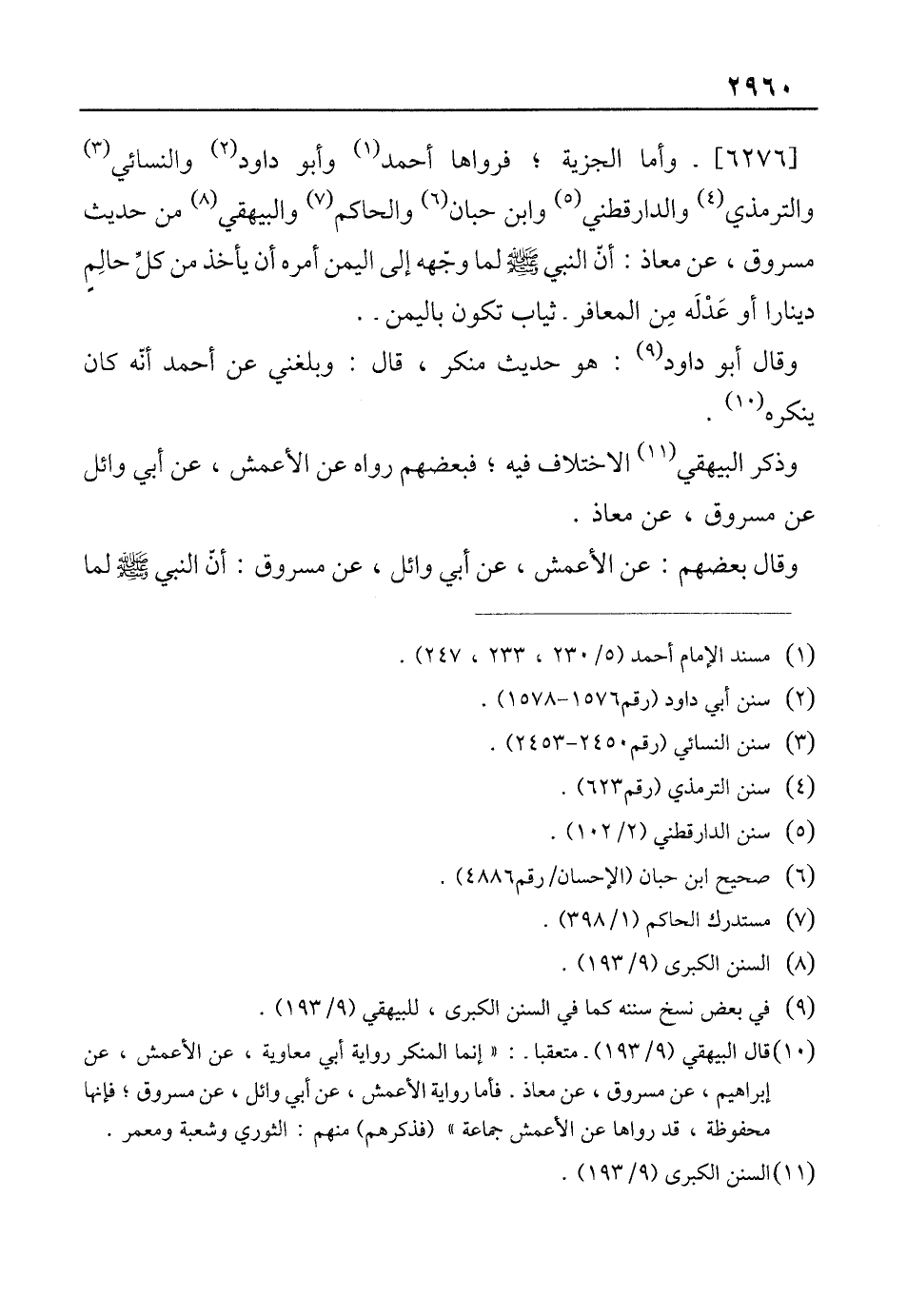 (¬10) قال البيهقي (9/ 193) -متعقبا-: "إنما المنكر رواية أبي معاوية، عن الأعمش، عن إبراهيم، عن مسروق، عن معاذ. فأما رواية الأعمش، عن أبي وائل، عن مسروق؛ فإنها محفوظة، قد رواها عن الأعمش جماعة" (فذكرهم) منهم: الثوري وشعبة ومعمر.