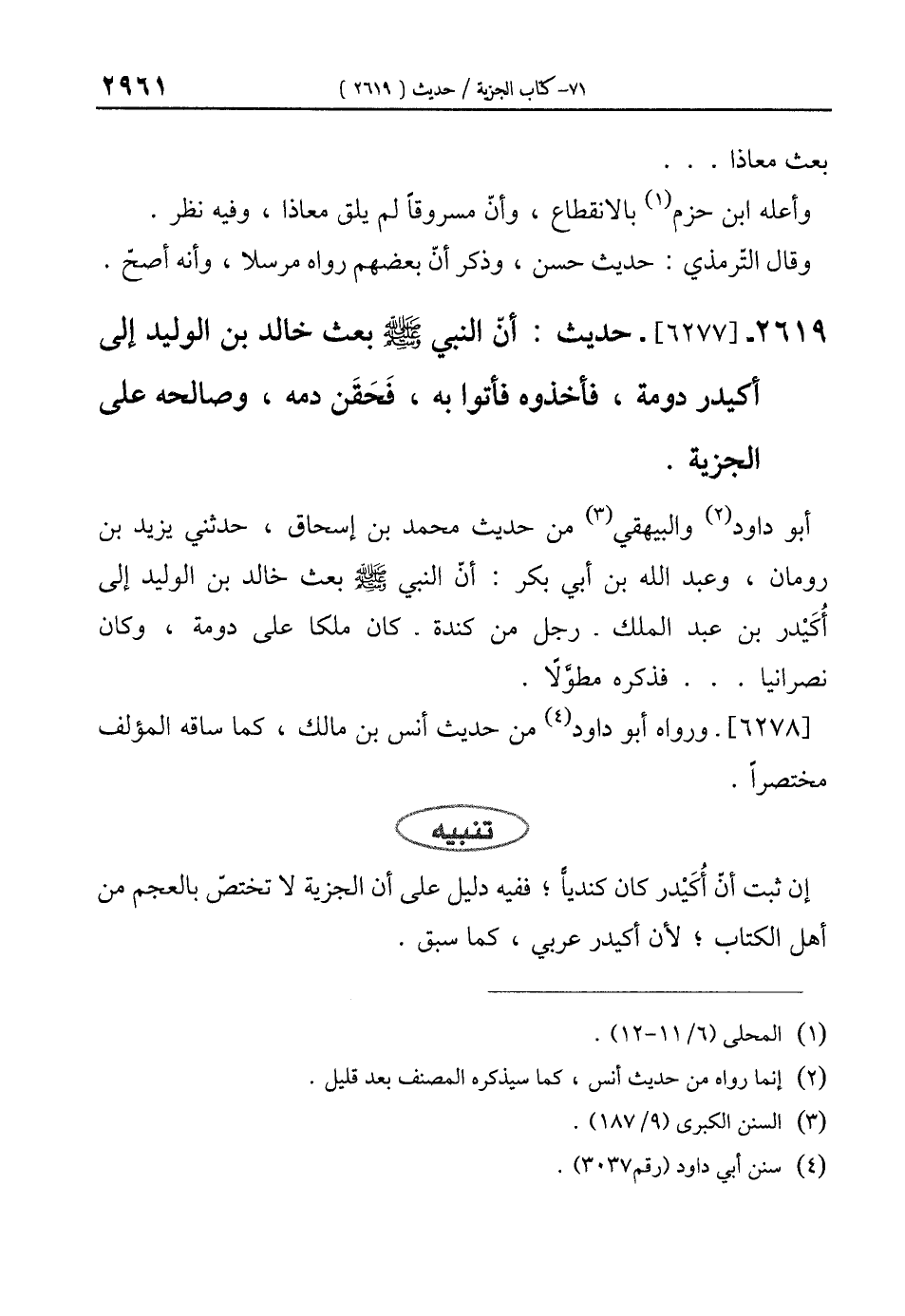 2619 - [6277]- حديث: أنّ النبي - صلى الله عليه وسلم - بعث خالد بن الوليد إلى أكيدر دومة، فأخذوه فأتوا به، فَحَقَن دمه، وصالحه على الجزية.