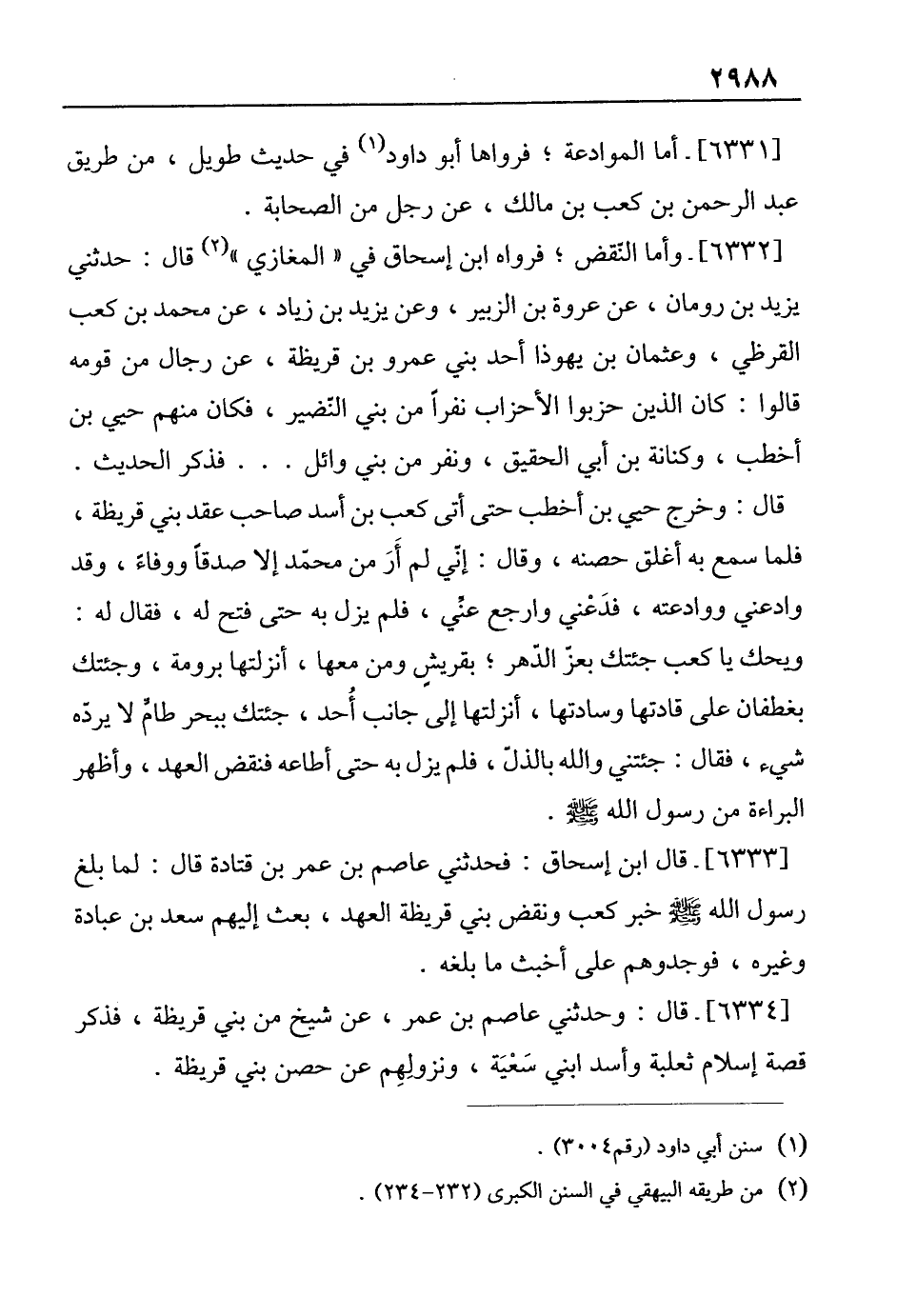 [6332]- وأما النّقض؛ فرواه ابن إسحاق في "المغازي" (¬2) قال: حدثني يزيد بن رومان، عن عروة بن الزبير، وعن يزيد بن زياد، عن محمَّد بن كعب القرظي، وعثمان بن يهوذا أحد بني عمرو بن قريظة، عن رجال من قومه قالوا: كان الذين حزبوا الأحزاب نفرًا من بني النضير، فكان منهم حيي بن أخطب، وكنانة بن أبي الحقيق، ونفر من بني وائل ... فذكر الحديث.