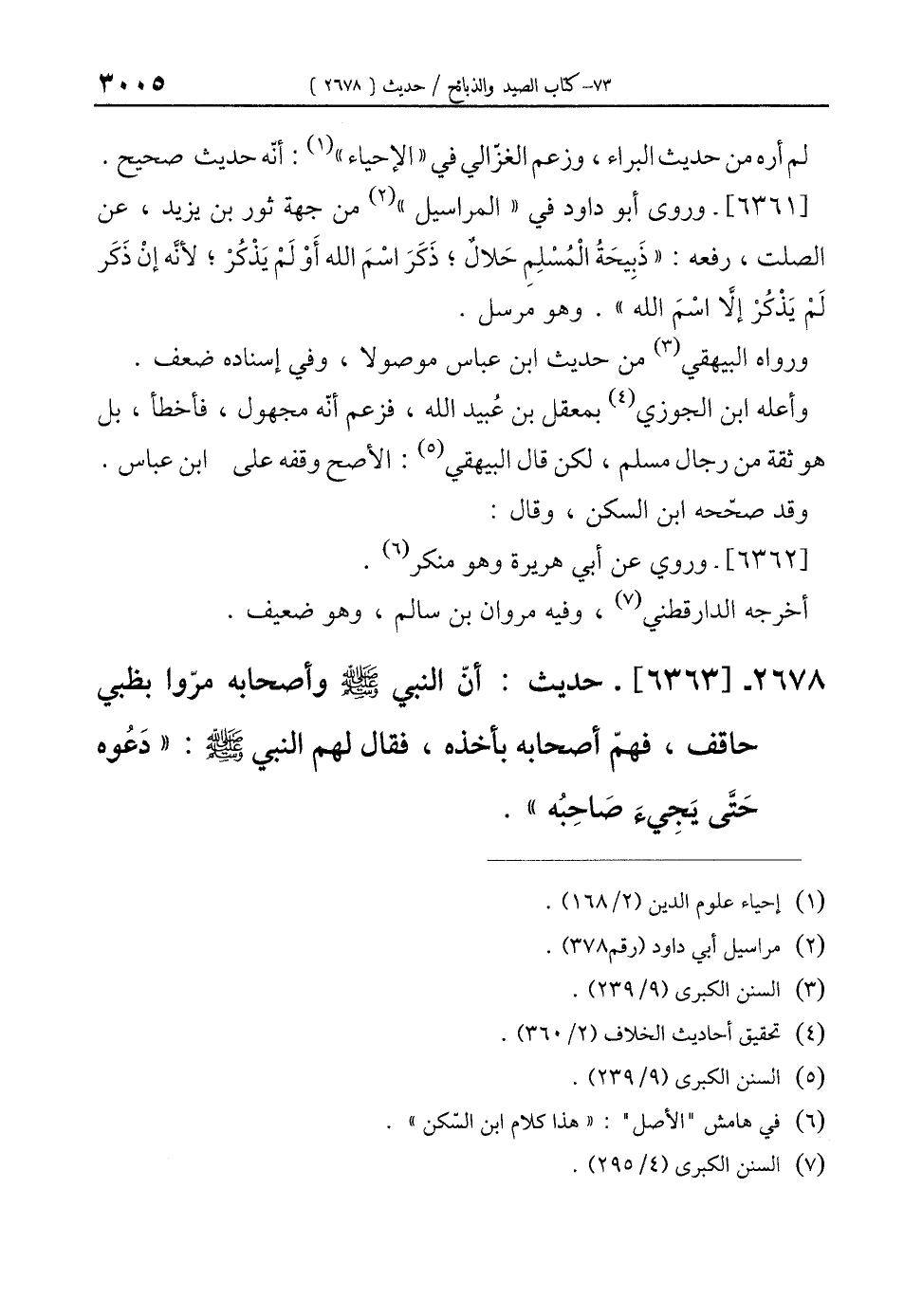 2678 - [6363]- حديث: أنّ النبي - صلى الله عليه وسلم - وأصحابه مرّوا بظبي حاقف، فهمّ أصحابه بأخذه، فقال لهم النبي - صلى الله عليه وسلم -: "دَعُوه حَتَّى يَجِيءَ صَاحِبُه".