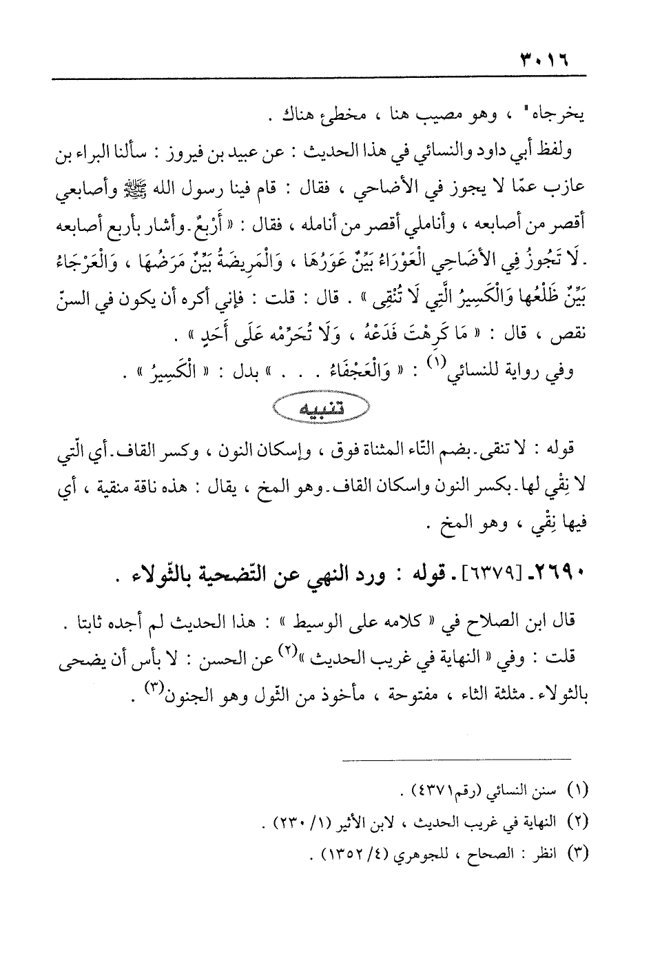 2690 - [6379]- قوله: ورد في النهي عن التّضحية بالثّولاء.
