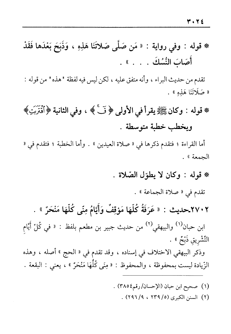 2702 - حديث: "عَرَفَةُ كُلّهَا مَوْقِفٌ وَأَيَّامُ مِنًى كلّهَا مَنْحَرٌ".