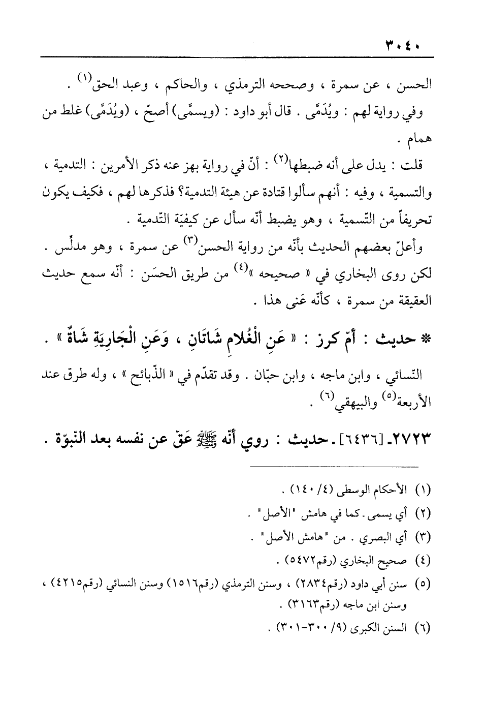(¬5) سنن أبي داود (رقم 2834)، وسنن الترمذي (رقم 1516) وسنن النسائي (رقم 4215)، وسنن ابن ماجه (رقم 3163).