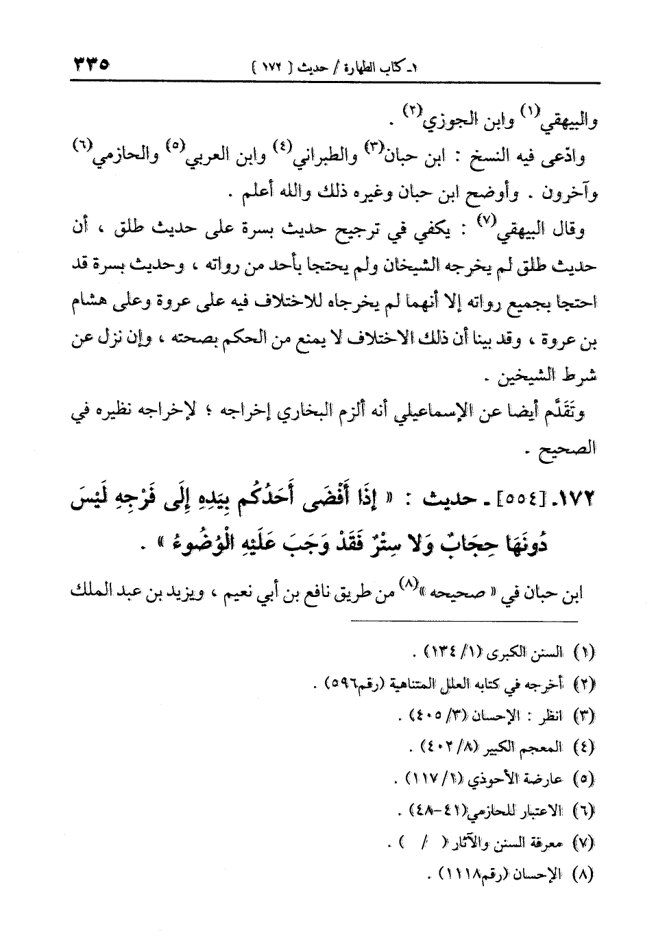 172 - [554]- حديث: "إذَا أفضَى أَحَدكم بِيدِه إِلَى فَرْجِه ليس دونها حجابٌ وَلا سِتْرٌ فَقَدْ وَجَبَ عَلَيْهِ الْوُضُوءُ".