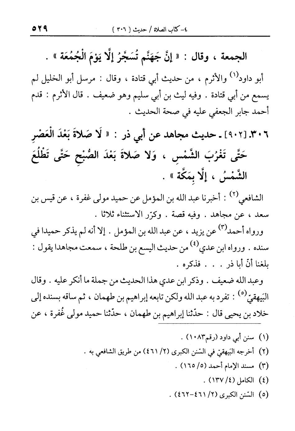 306 - [902]- حديث مجاهد عن أبي ذر: "لَا صَلاةَ بَعْدَ الْعَصْرِ حَتَّى تَغْرُبَ الشَّمْسِ، وَلا صَلاةَ بَعْدَ الصُّبْحِ حَتَّى تَطْلُعَ الشمْسُ، إلاَّ بِمَكَّة".