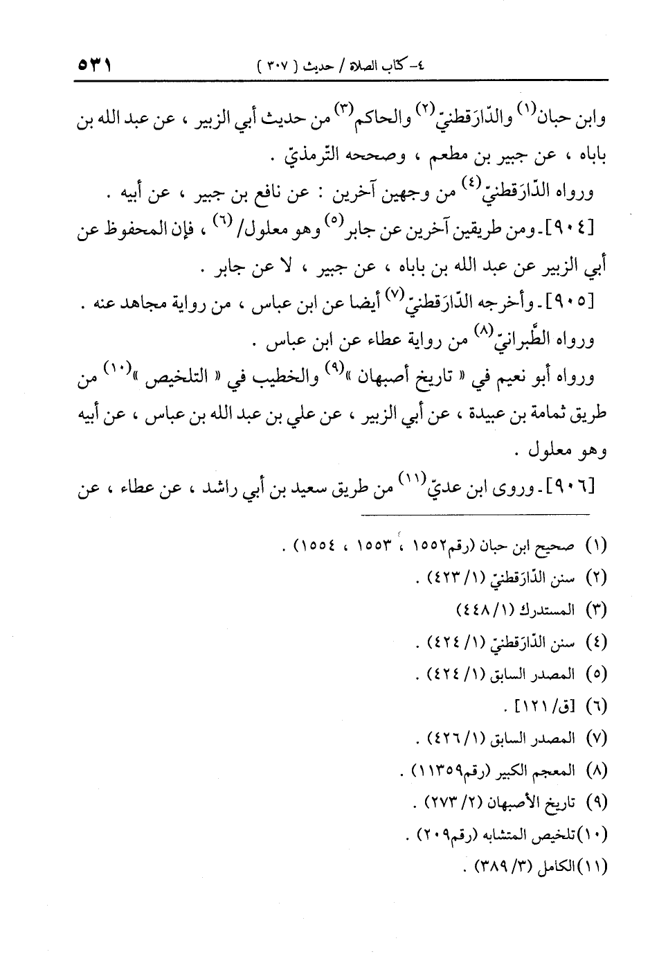 [904]- ومن طريقين آخرين عن جابر (¬5) وهو معلول/ (¬6)، فإن المحفوظ عن أبي الزبير عن عبد الله بن باباه، عن جبير، لا عن جابر.