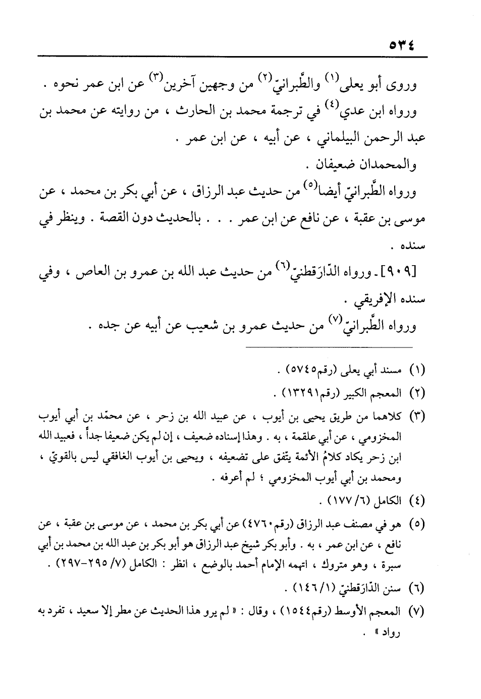 (¬5) هو في مصنف عبد الرزاق (رقم 4760) عن أبي بكر بن محمد، عن موسى بن عقبة، عن نافع، عن ابن عمر، به. وأبو بكر شيخ عبد الرزاق هو أبو بكر بن عبد الله بن محمد بن أبي سبرة، وهو متروك، اتهمه الإِمام أحمد بالوضع، انظر: الكامل (7/ 295 - 297).