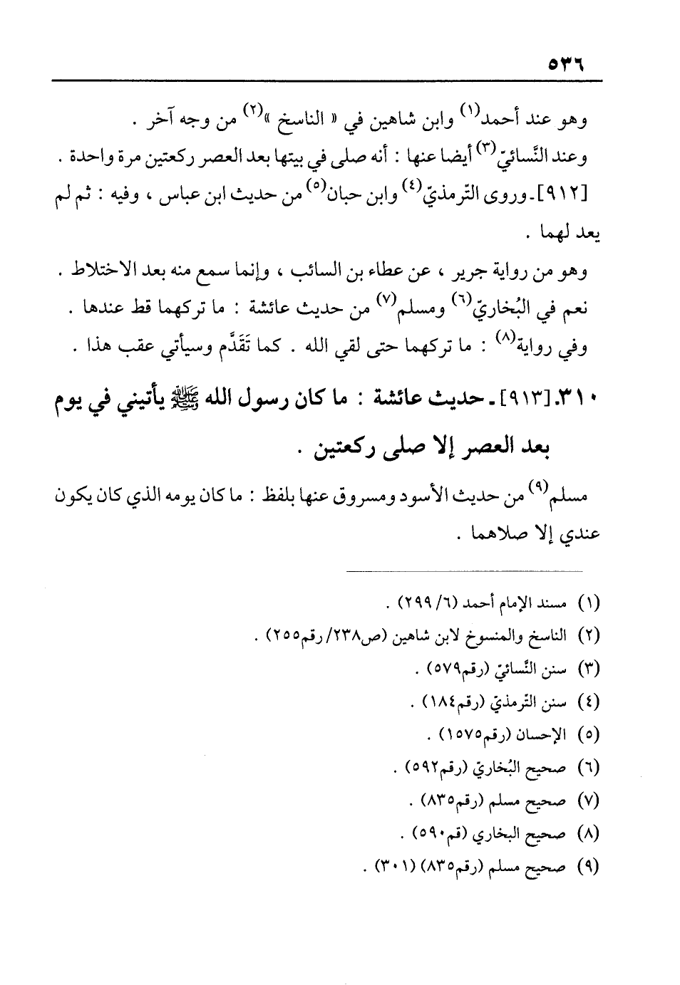 310 - [913]- حديث عائشة: ما كان رسول الله - صلى الله عليه وسلم - يأتيني في يوم بعد العصر الأولى ركعتين.