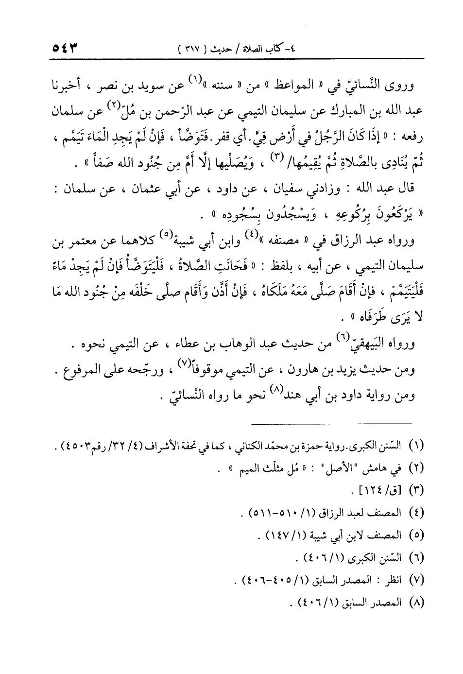 (¬1) السّنن الكبرى - رواية حمزة بن محمّد الكناني، كما في تحفة الأشراف (4/ 32/ رقم 4503).