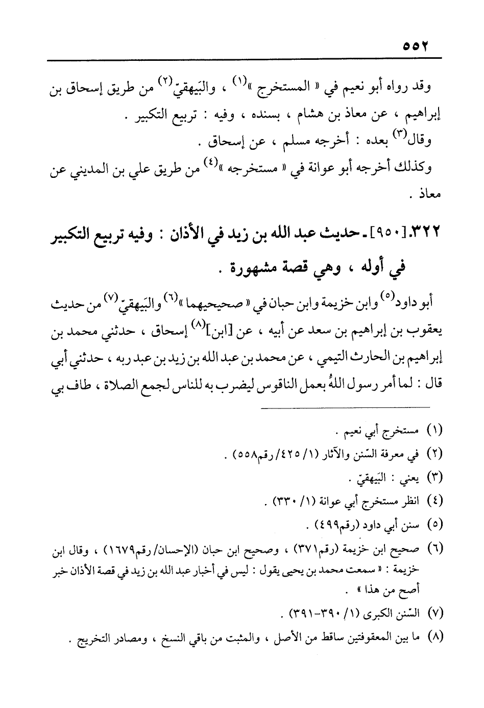 322 - [950]- حديث عبد الله بن زيد في الأذان: وفيه تربيع التكبير في أوله، وهي قصة مشهورة.