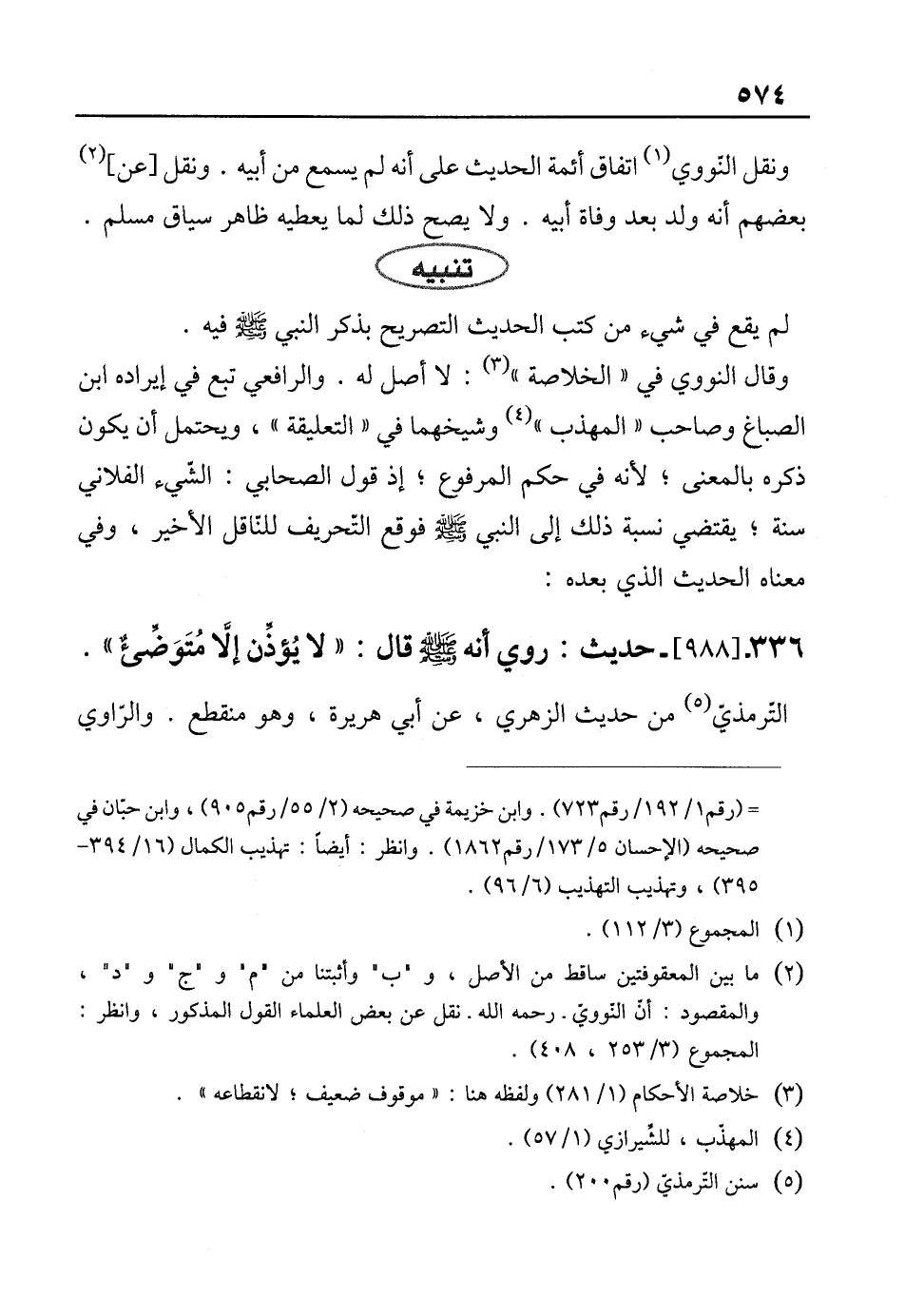 336 - [988]- حديث: روي أنه - صلى الله عليه وسلم - قال: "لا يُؤذِّن إلاَّ مُتَوَضِّئٌ".