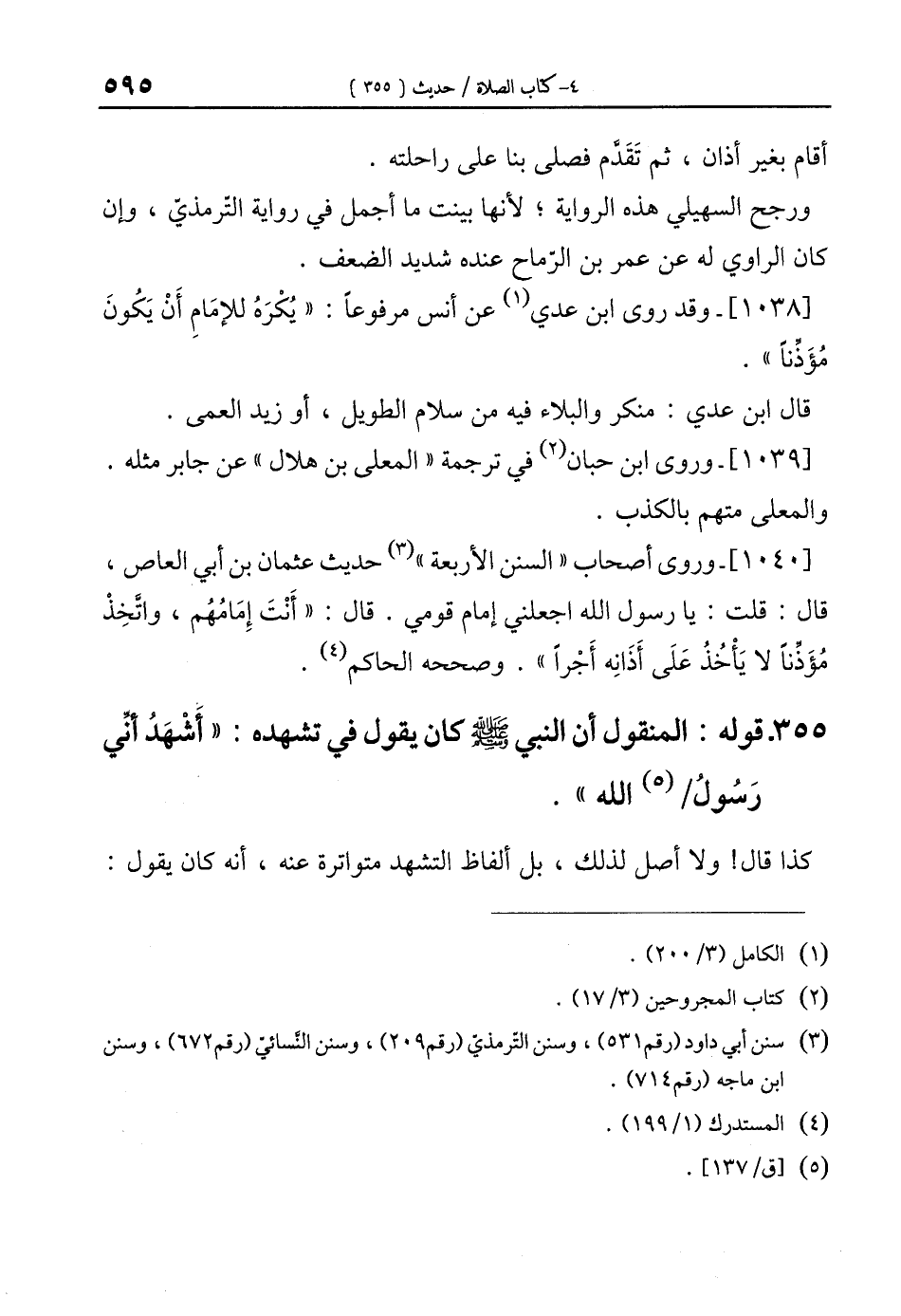 [1038]- وقد روى ابن عدي (¬1) عن أنس مرفوعًا: "يُكْرَهُ للإمَامِ أَنْ يَكُونَ مُؤَذِّنًا".