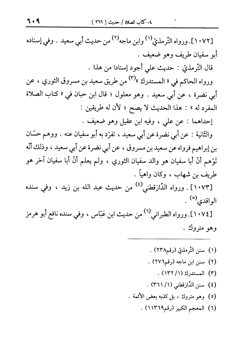 [1072]- ورواه التِّرمذيّ (¬1) وابن ماجه (¬2) من حديث أبي سعيد. وفي إسناده أبو سفيان طريف وهو ضعيف.