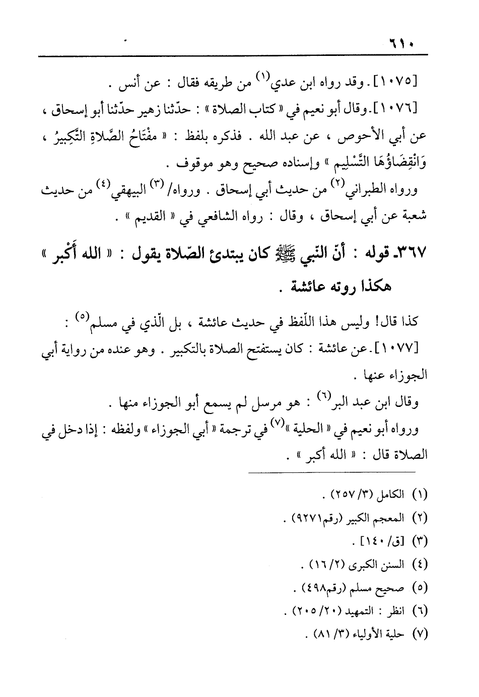 [1076]- وقال أبو نعيم في "كتاب الصلاة": حدّثنا زهير حدّثنا أبو إسحاق، عن أبي الأحوص، عن عبد الله. فذكره بلفظ: "مفْتَاحُ الصَّلاةِ التَّكبِيرُ، وَانْقِضَاؤُهَا التَّسْلِيم" وإسناده صحيح وهو موقوف.