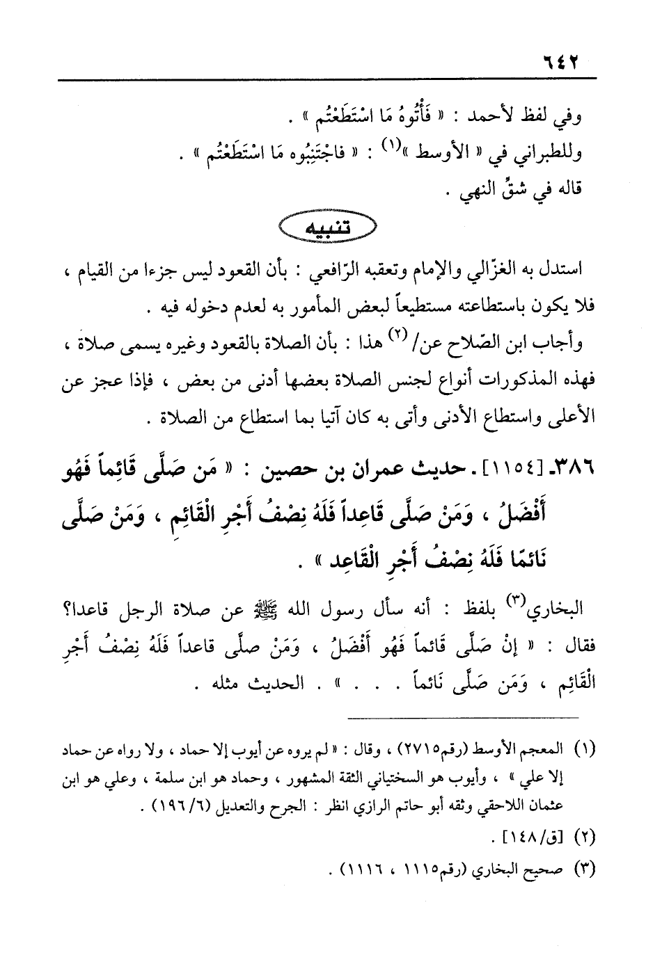 386 - [1154]- حديث عمران بن حصين: "مَن صلَّى قَائِمًا فَهُو أَفْضَلُ، وَمَنْ صَلَّى قَاعِدًا فَلَهُ نِصْفُ أَجْرِ الْقَائِمِ، وَمَنْ صَلَّى نَائمًا فَلَهُ نِصْفُ أَجْرِ الْقَاعِد".