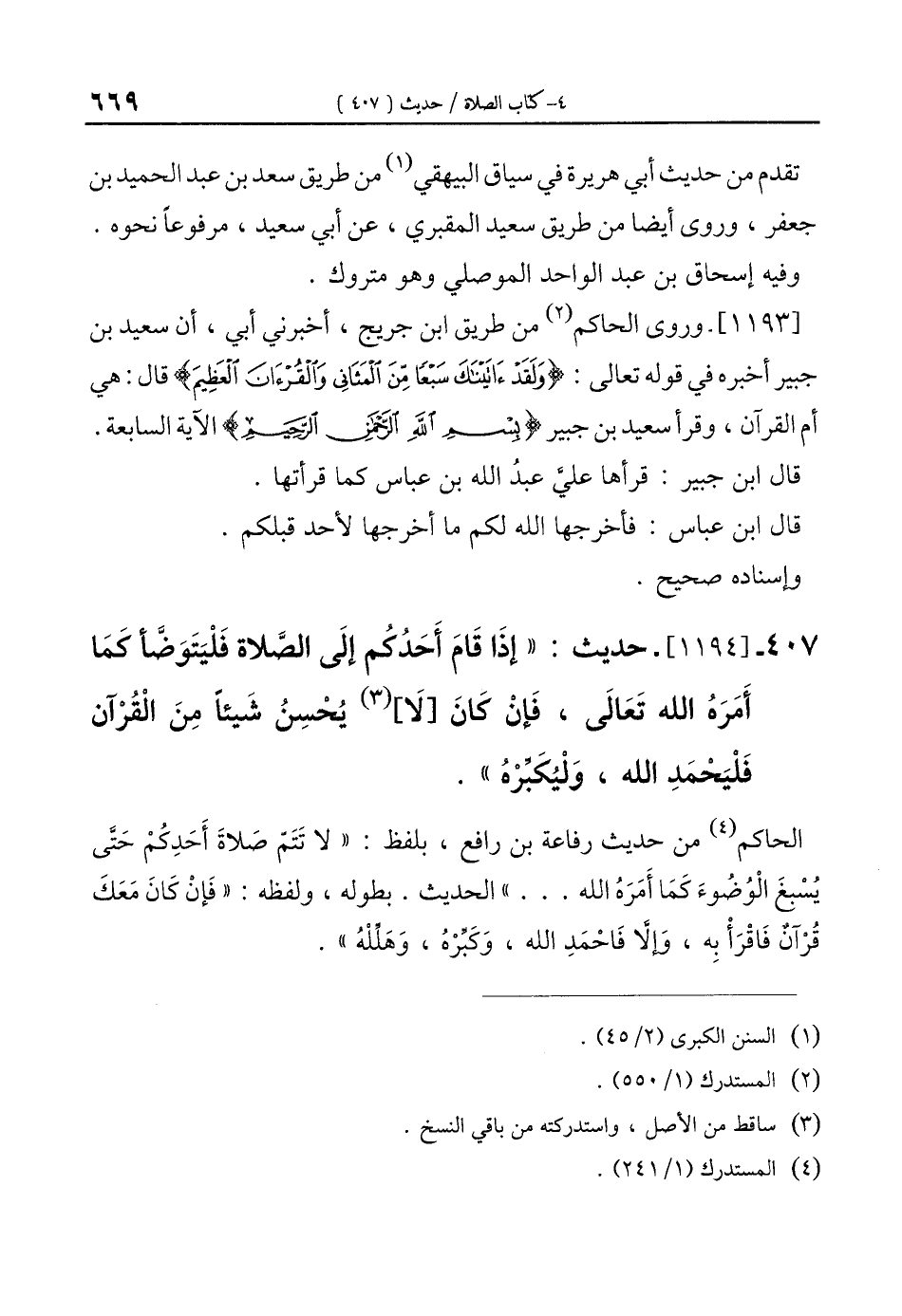 407 - [1194]. حديث: "إذا قَامَ أَحَدُكُم إلَى الصَّلاة فَلْيَتَوَضَّأ كَمَا أَمَرَهُ الله تَعَالَى، فَإنْ كَانَ [لَا] (¬3) يحْسِنُ شَيئًا مِنَ الْقُرْآن فَلْيَحْمَدِ الله، وَلْيُكَبِّرْه".