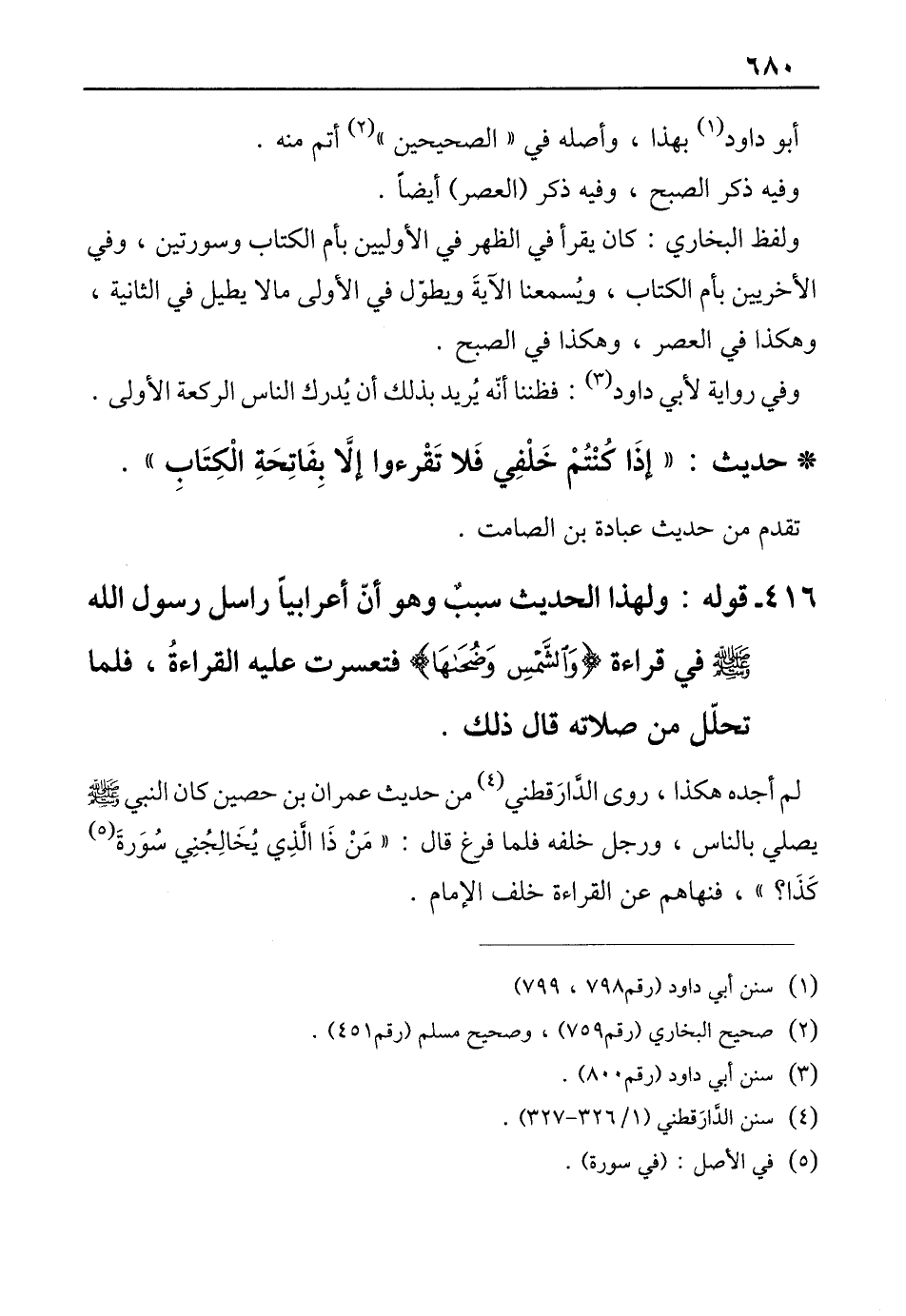 * حديث: "إذا كُنْتُمْ خَلْفِي فَلا تَقْرءوا إلاَّ بِفَاتِحَةِ الْكِتَابِ".