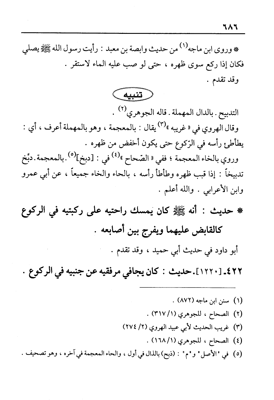 422 - [1220]. حديث: كان يجافي مرفقيه عن جنبيه في الركوع.