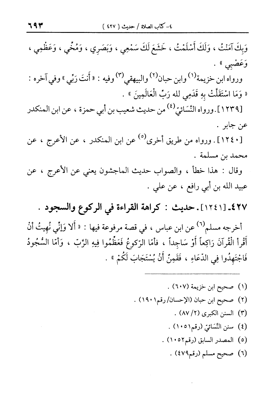 427 - [1241]- حديث: كراهة القراءة في الركوع والسجود.