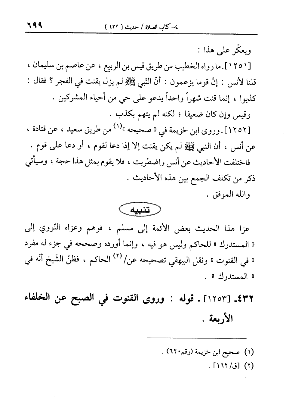 432 - [1253]- قوله: وروى القنوت في الصبح عن الخلفاء الأربعة.