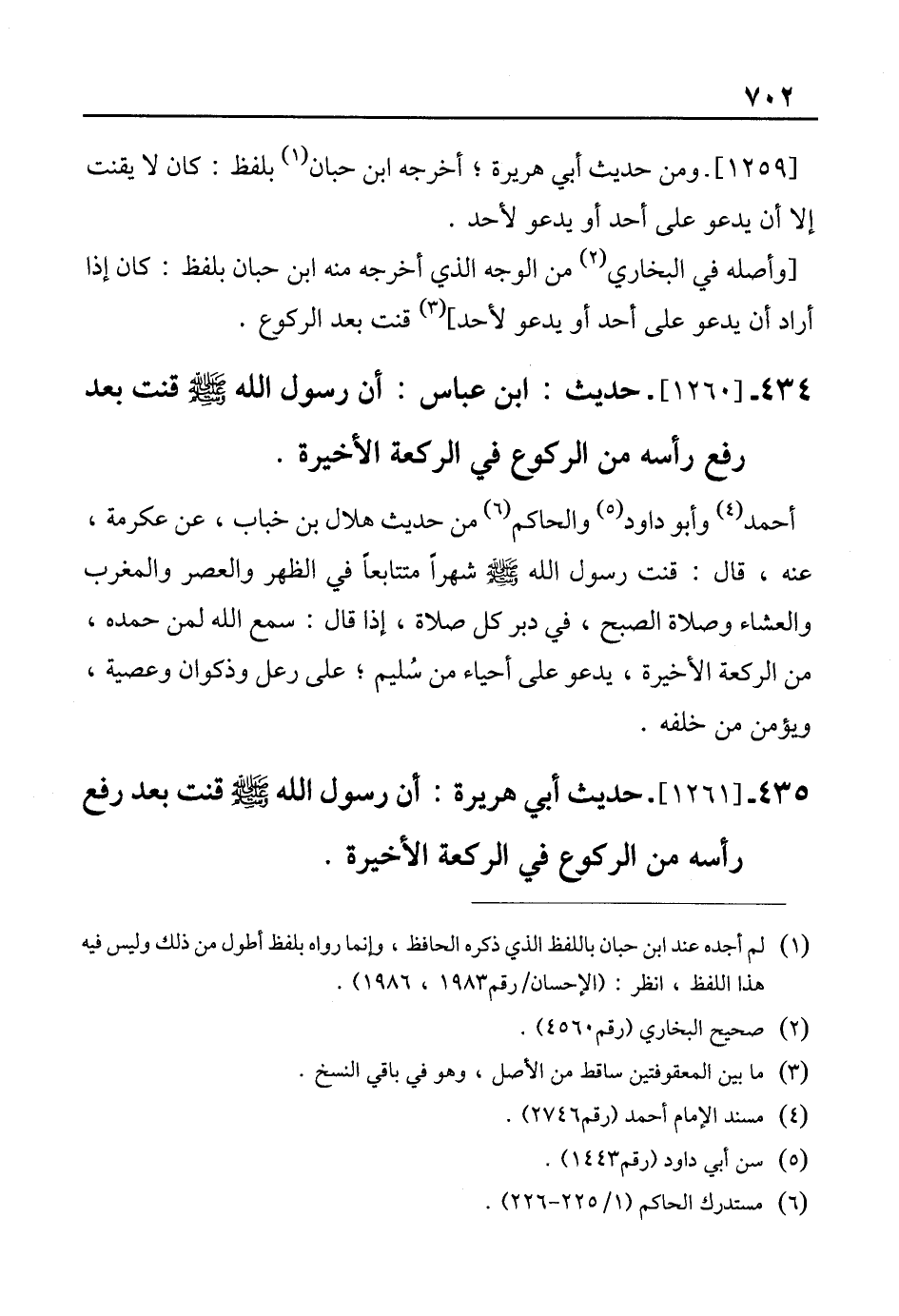 435 - [1261]- حديث أبي هريرة: أن رسول الله - صلى الله عليه وسلم - قنت بعد رفع رأسه من الركوع في الركعة الأخيرة.