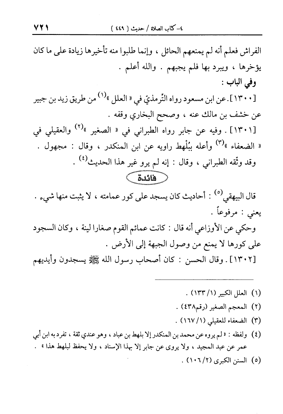 [1301]- وفيه عن جابر رواه الطبراني في "الصغير" (¬2) والعقيلي في "الضعفاء" (¬3) وأعله ببُلْهط راويه عن ابن المنكدر، وقال: مجهول.