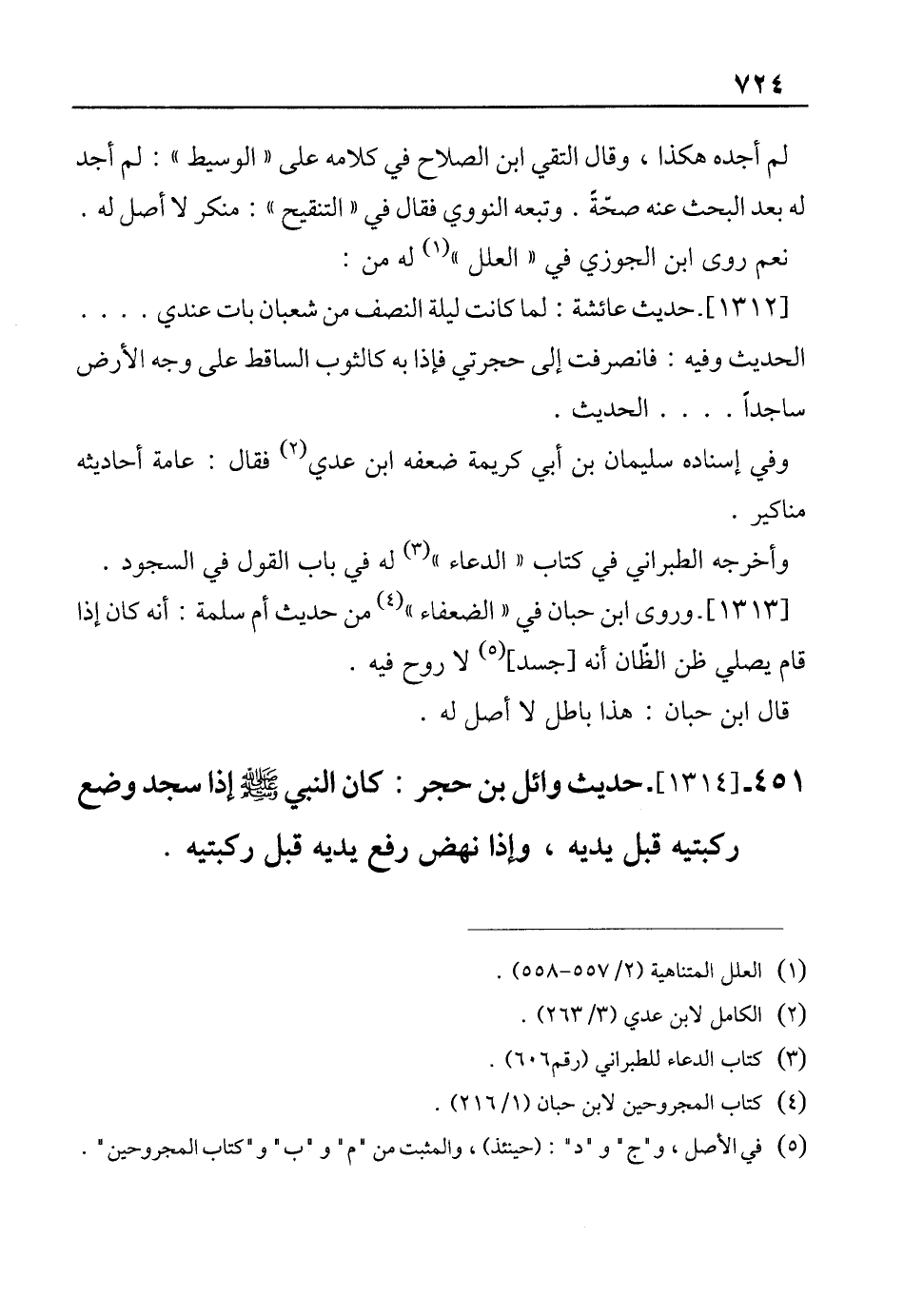 [1312]- حديث عائشة: لما كانت ليلة النصف من شعبان بات عندي. . . . الحديث وفيه: فانصرفت إلى حجرتي فإذا به كالثوب الساقط على وجه الأرض ساجدًا. . . . الحديث.