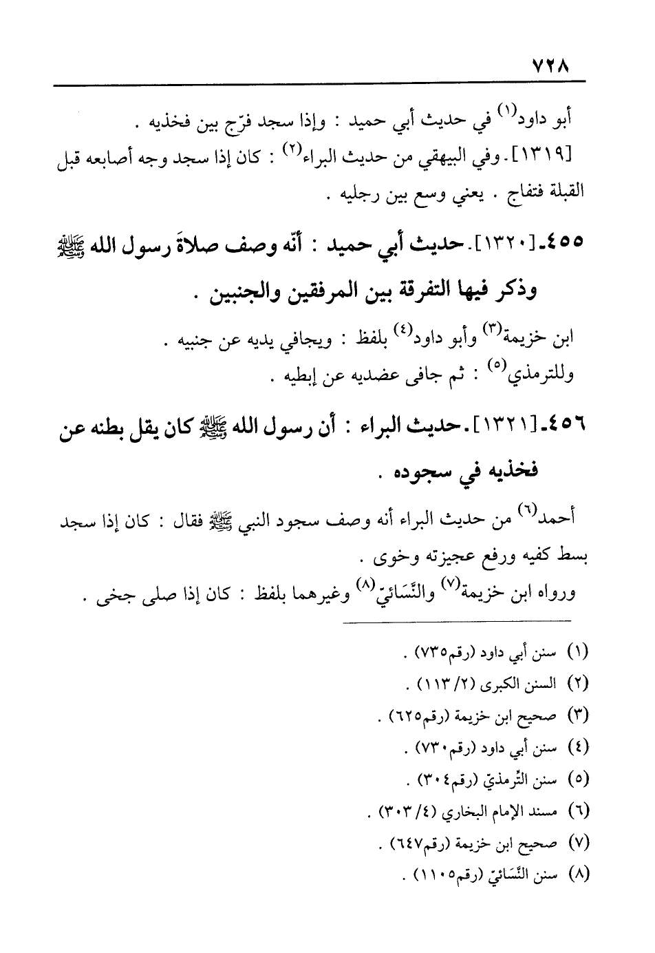 456 - [1321]- حديث البراء: أن رسول الله - صلى الله عليه وسلم - كان يقل بطنه عن فخذيه في سجوده.