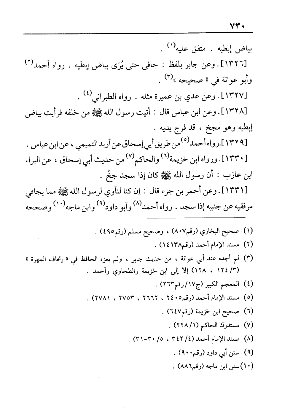 [1328]- وعن ابن عباس قال: أتيت رسول الله - صلى الله عليه وسلم - من خلفه فرأيت بياض إبطيه وهو مجخ، قد فرج يديه.