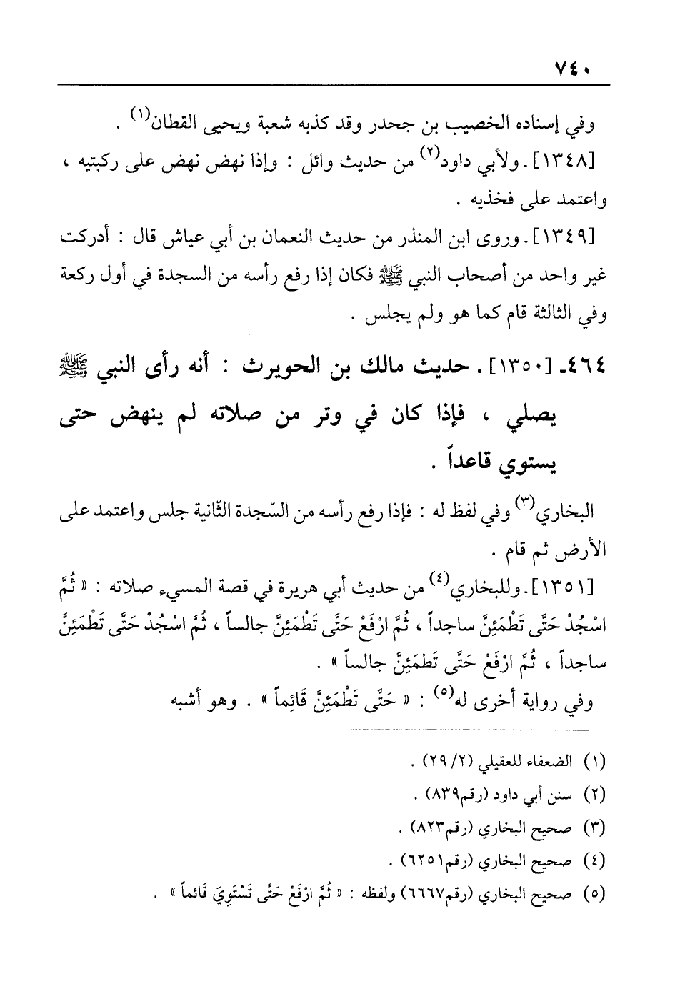 464 - [1350]. حديث مالك بن الحويرث: أنه رأى النبي - صلى الله عليه وسلم - يصلي، فإذا كان في وتر من صلاته لم ينهض حتى يستوي قاعدًا.