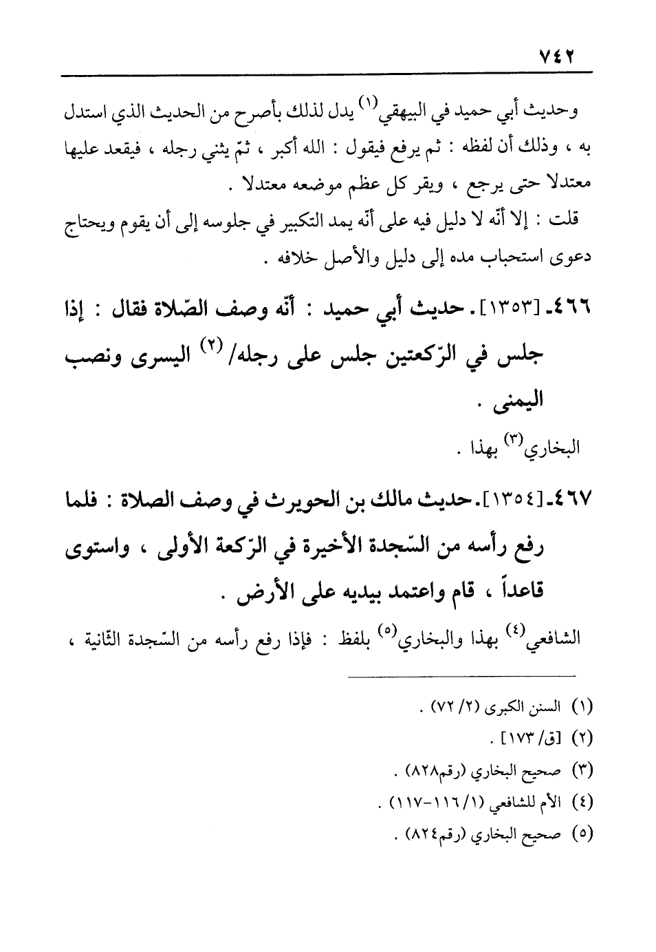 وحديث أبي حميد في البيهقي (¬1) يدل لذلك بأصرح من الحديث الذي استدل به، وذلك أن لفظه: ثم يرفع فيقول: الله أكبر، ثمّ يثني رجله، فيقعد عليها معتدلًا حتى يرجع، ويقر كل عظم موضعه معتدلًا.