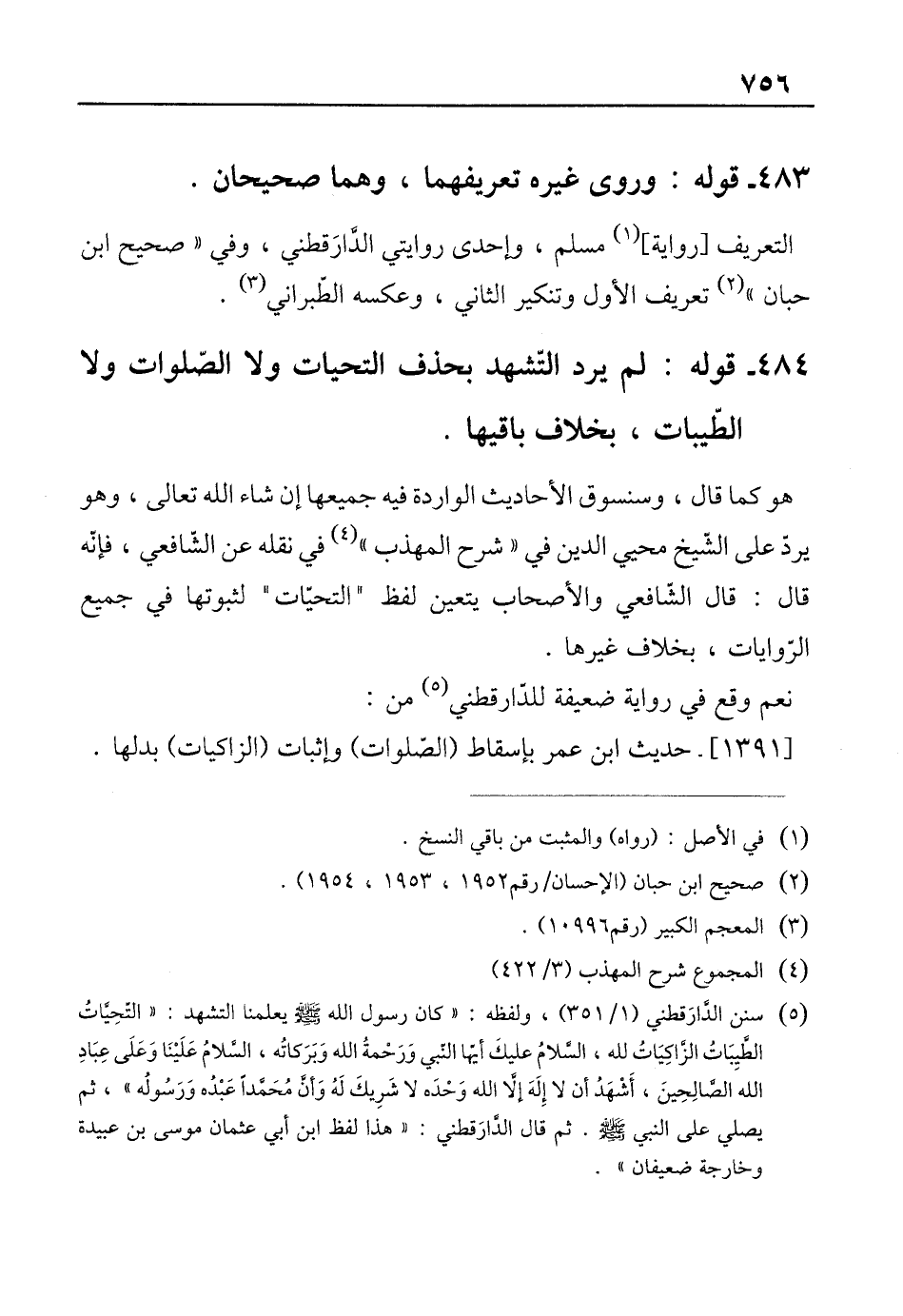 484 - قوله: لم يرد التّشهد بحذف التحيات ولا الصّلوات ولا الطّيبات، بخلاف باقيها.