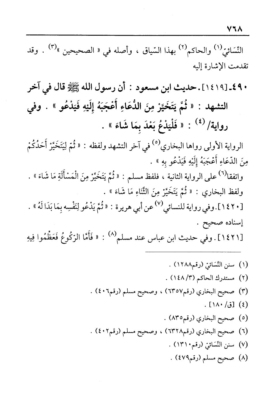 الرواية الأولى رواها البخاري (¬5) في آخر التشهد ولفظه: "ثُمَّ لِيَتَخَيَّرْ أَحَدُكُمْ مِنَ الدّعَاءِ أَعْجَبَهُ إِلَيْهِ فَيَدْعُو بِهِ".