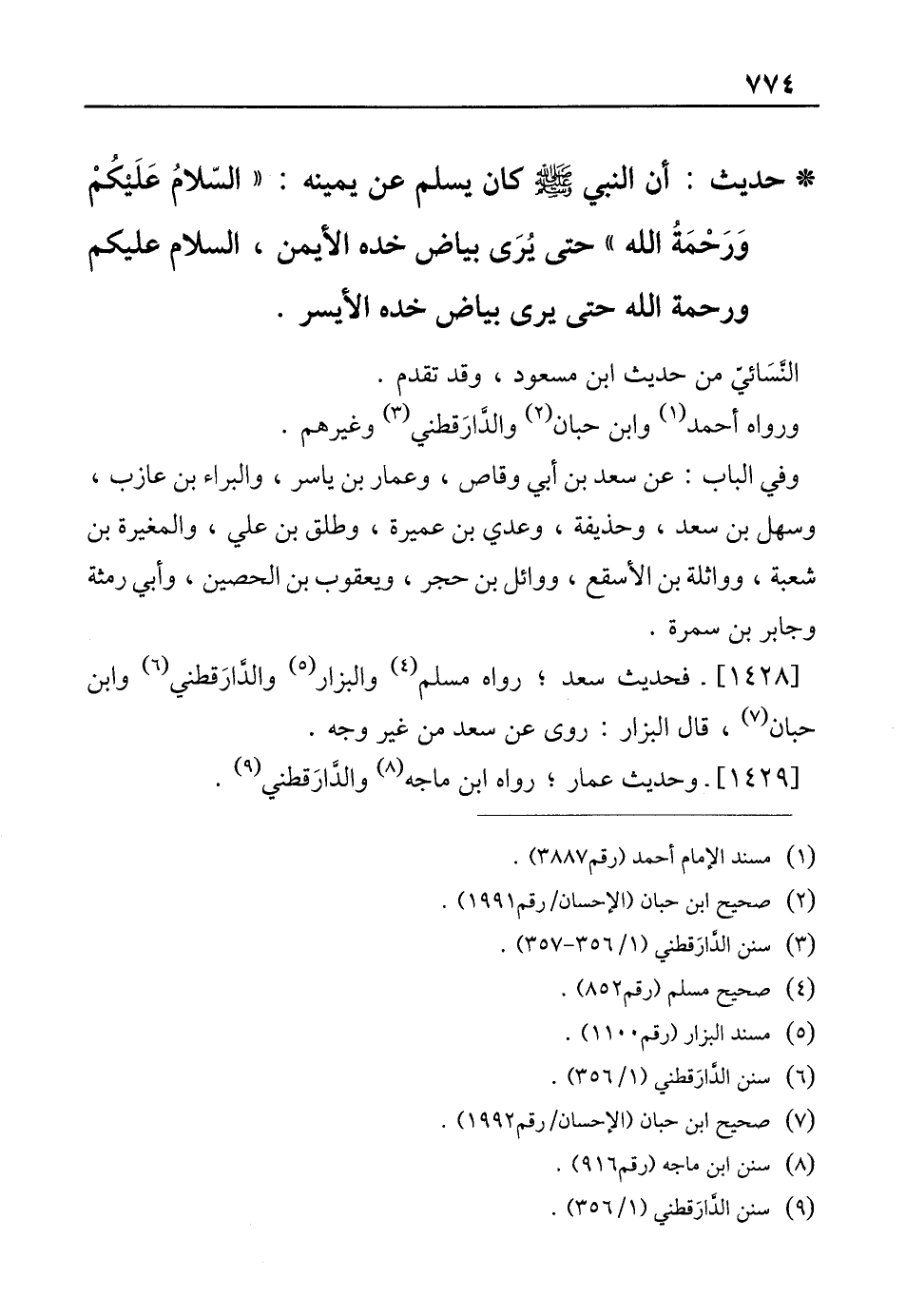 [1428]. فحديث سعد؛ رواه مسلم (¬4) والبزار (¬5) والدَّارَقطني (¬6) وابن حبان (¬7)، قال البزار: روى عن سعد من غير وجه.