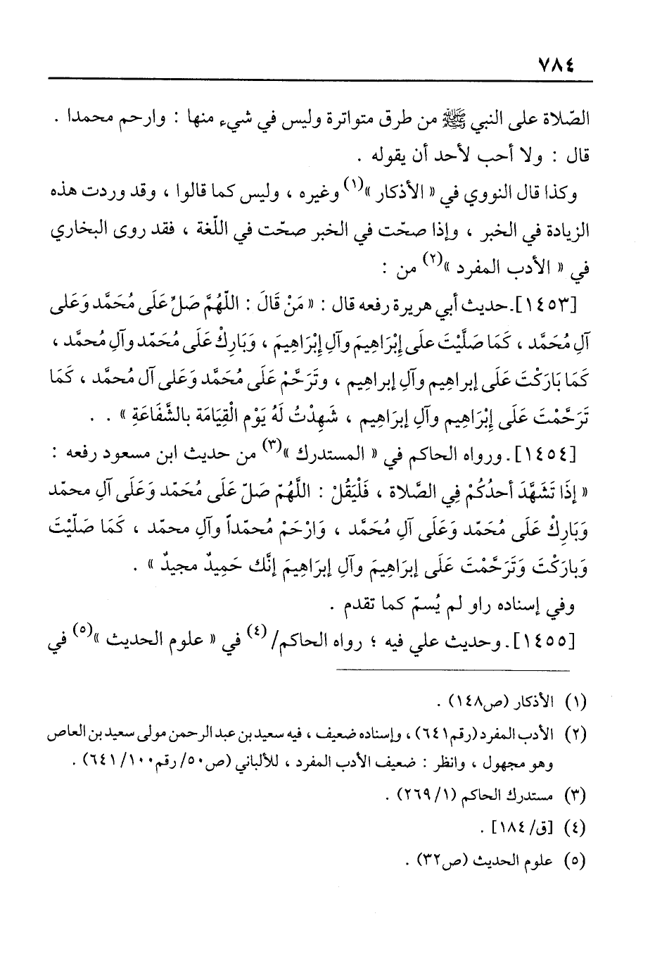 [1454]- ورواه الحاكم في "المستدرك" (¬3) من حديث ابن مسعود رفعه: " إذًا تَشَهَّدَ أحدُكُمْ في الصَّلاة، فَلْيَقُلْ: اللَّهُمّ صَلّ عَلَى مُحَمَّد وَعَلَى آلِ محمّد وَبَارِكْ عَلَى مُحَمُد وَعَلَى آلِ مُحَمَّد، وَارْحَمْ مُحمّدًا وآلِ محمّد، كَمَا صَلّيْتَ وَبارَكْتَ وَتَرَحمْتَ عَلَى إبرَاهِيمَ وآلِ إبرَاهِيمَ إنَّك حَمِيدٌ مجيدٌ ".