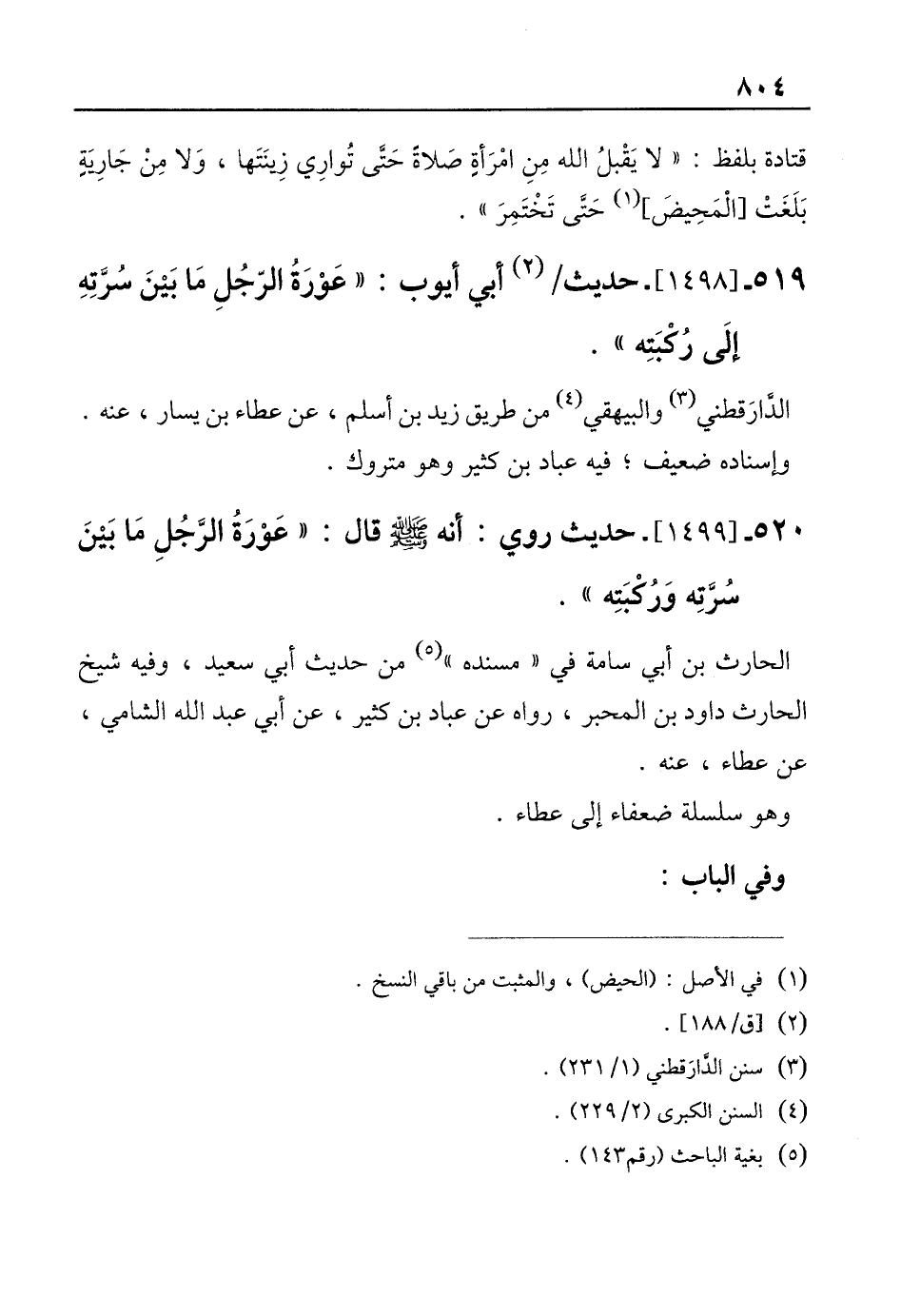 519 - [1498]- حديث/ (¬2) أبي أيوب: "عَوْرَةُ الرّجُلِ مَا بَيْنَ سُرَّتِهِ إلَى رُكبَتِه".