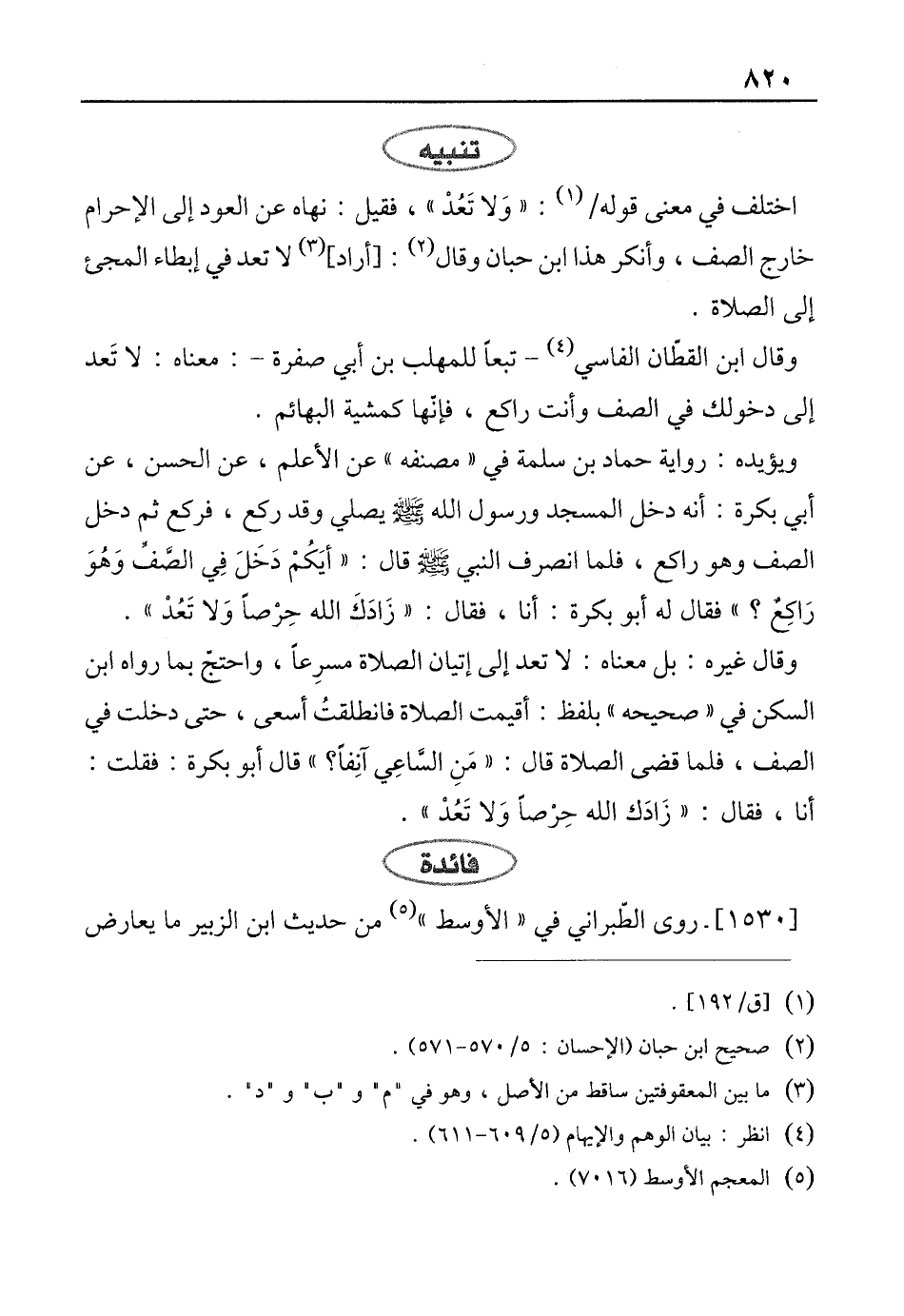 اختلف في معنى قوله/ (¬1): "وَلا تَعُدْ"، فقيل: نهاه عن العود إلى الإحرام خارج الصف، وأنكر هذا ابن حبان وقال (¬2): [أراد] (¬3) لا تعد في إبطاء المجئ إلى الصلاة.