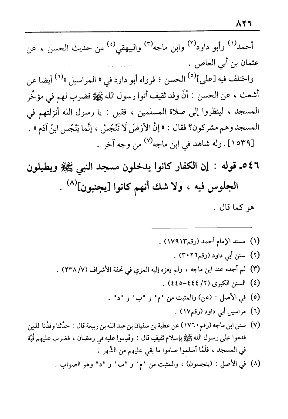 546 - قوله: إن الكفار كانوا يدخلون مسجد النبي - صلى الله عليه وسلم - ويطيلون الجلوس فيه، ولا شك أنهم كانوا [يجنبون] (¬8).