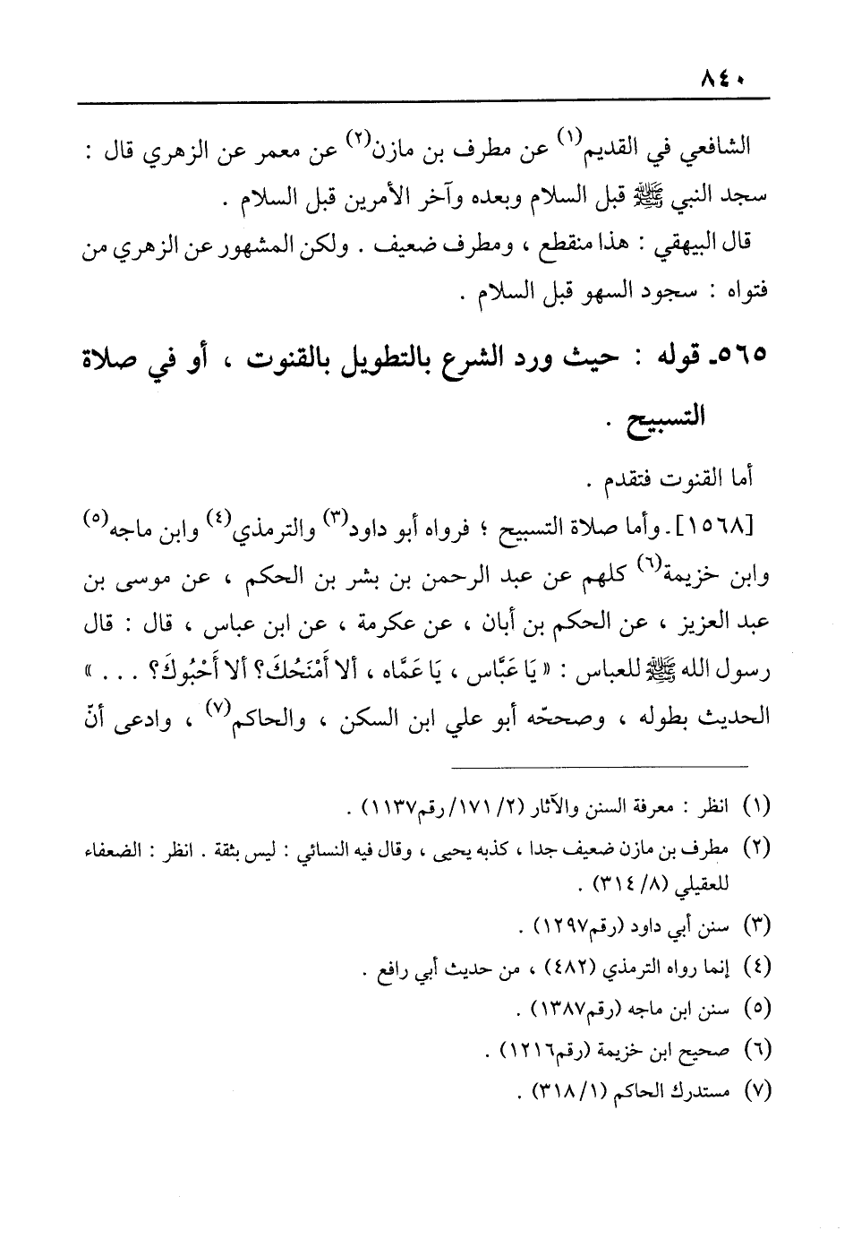 565 - قوله: حيث ورد الشرع بالتطويل بالقنوت، أو في صلاة التسبيح.