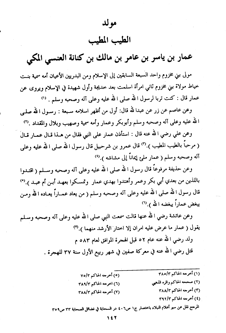 قال رسول الله صلى الله عليه وعلى آله وصحبه وسلم (من يعاد عمارًا يعاده الله ومن يبغض عمارًا يبغضه الله). (¬6)