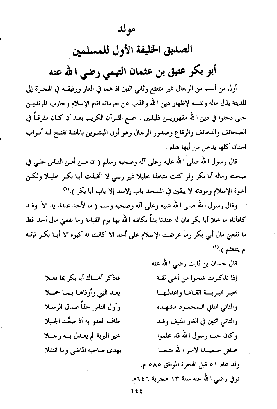 مولد الصديق الخليفة الأول للمسلمين أبو بكر عتيق بن عثمان التيمي (رضي الله عنه)