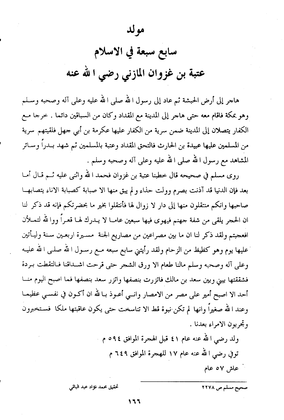 مولد سابع سبعة في الإِسلام عتبة بن غزوان المازني (رضي الله عنه)