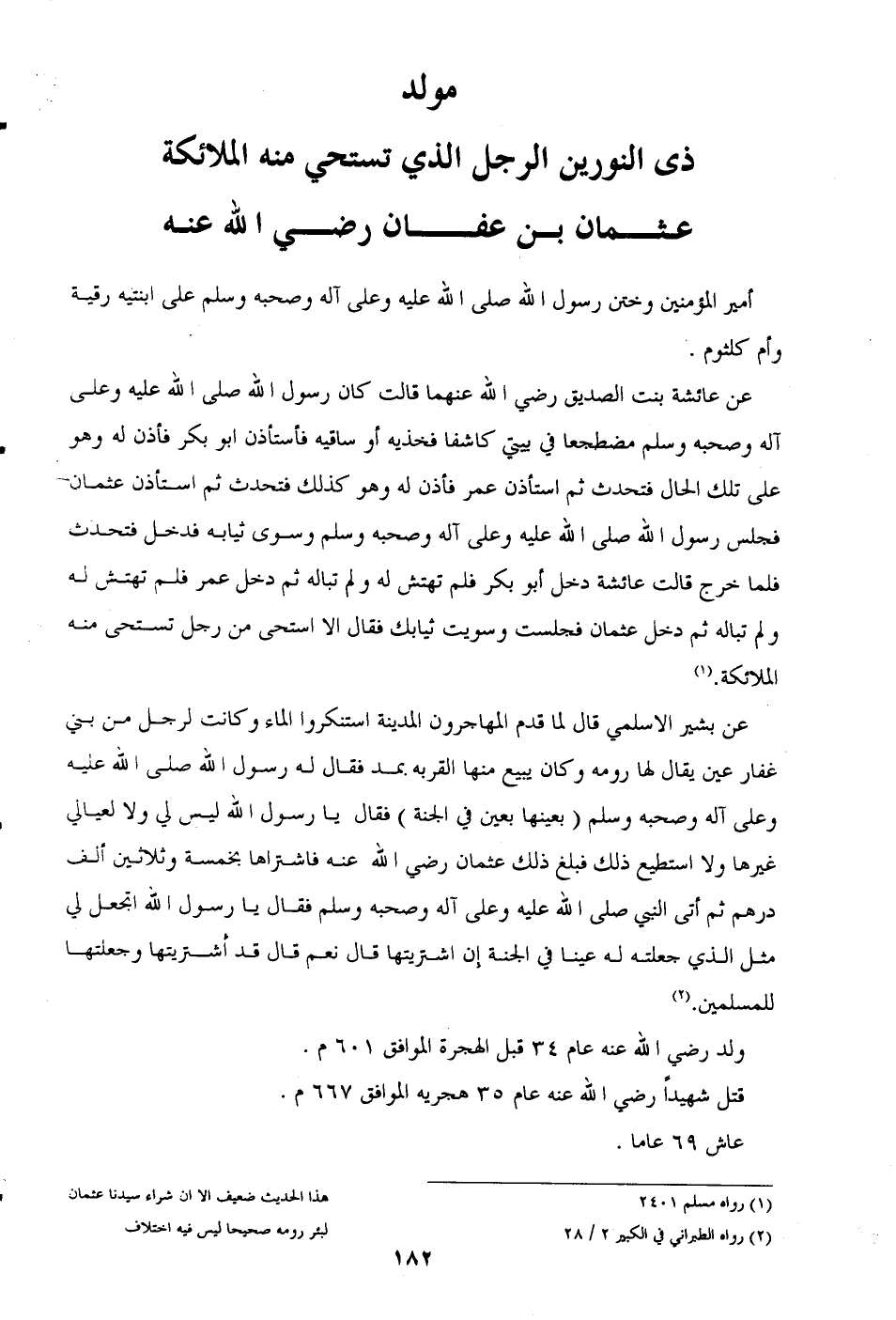 مولد ذي النورين الرجل الذي تستحي منه الملائكة عثمان بن عفان (رضي الله عنه)