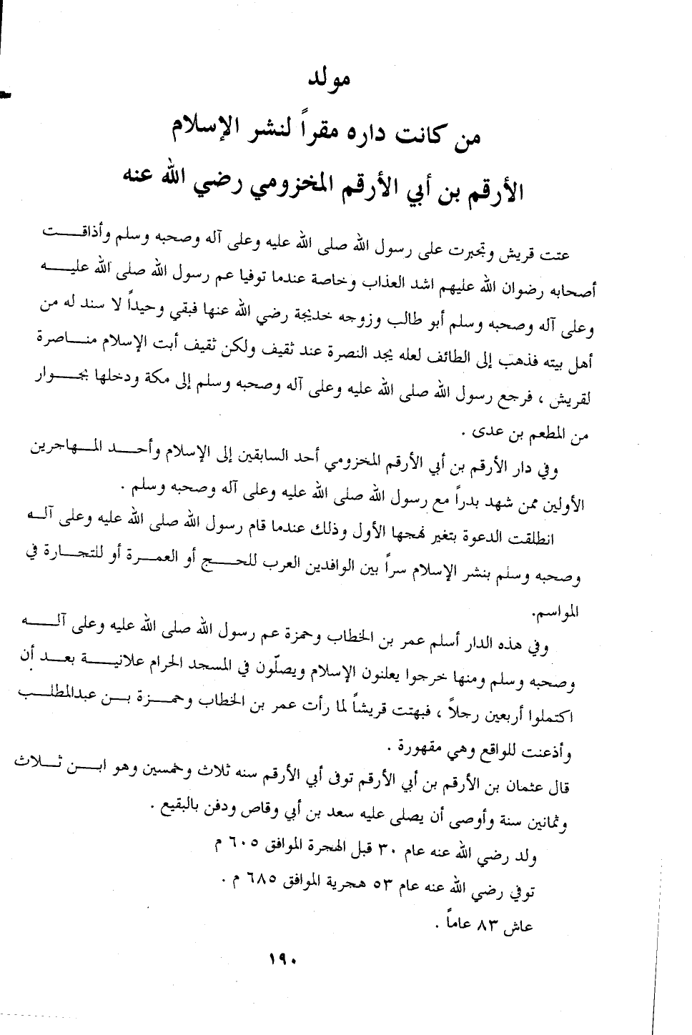 مولد من كانت داره مقرًا لنشر الإِسلام الأرقم بن أبي الأرقم المخزومي (رضي الله عنه)