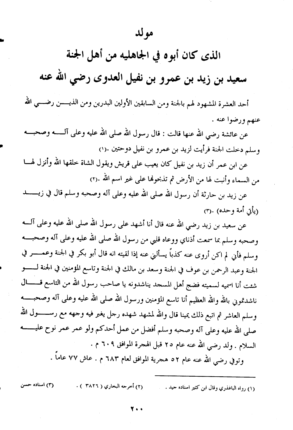 مولد الذي كان أبوه في الجاهلية من أهل الجنة سعيد بن زيد بن عمرو بن نفيل العدوي (رضي الله عنه)