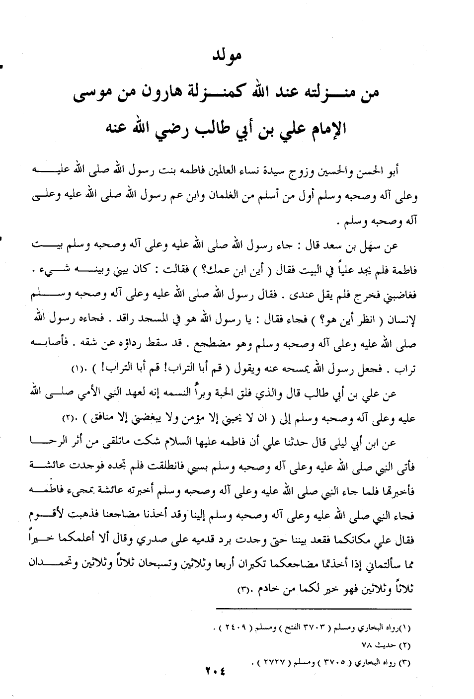 مولد من منزلته عند الله كمنزلة هارون من موسى الإِمام علي بن أبي طالب (رضي الله عنه)