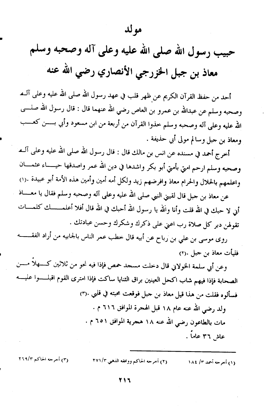 مولد حبيب رسول الله صلى الله عليه وعلى آله وصحبه وسلم معاذ بن جبل الخزرجي الأنصاري (رضي الله عنه)